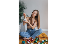 Новогодние шарики мы отдаём в праздничной коробочке с лентой. Подарок полностью готов к вручению. При отправлении в другой город, чтобы не повредить товар, добавляем сверху ещё один слой более прочной упаковки.