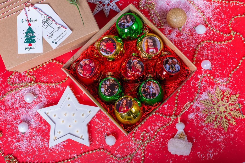 Большой сувенирный набор елочных игрушек с вашими фото - чудесный вариант для подарка. Вариант набора с пластиковыми цветными шариками, фото с одной, внешней стороны, диаметр шаров 8 см. Цвет шаров может быть любой из имеющихся в наличии. Детали можно обсудить при звонке.